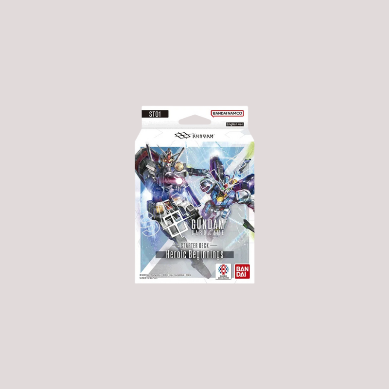 De vijf series “Mobile Suit Gundam” “Unicorn” “Wing” “SEED” “Witch from Mercury” uit Edition Beta zijn terug met meer kaarten! Tal van mobiele pakken en piloten maken hun GCG-debuut! Heroic Beginnings is een uitgebalanceerd Blue en White dek met helden uit de klassieke en nieuwe Gundam -serie - Amuro Ray/Gundam en Suletta Mercury/Gundam Aerial.