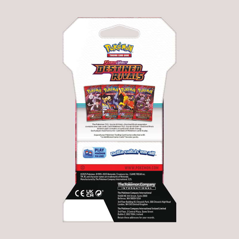 Pokémon Trainers, wees op je hoede! Het sinistere Team Rocket smeedt een nieuw plan, en dappere Trainers haasten zich om het te dwarsbomen. Sluit je aan bij Cynthia en Garchomp ex, Ethan en Ho-Oh ex, of Arven en Mabosstiff ex... Of keer je loyaliteit om en vecht aan de zijde van Team Rocket’s Pokémon zoals Mewtwo ex, onder het bevel van Giovanni! Kies je kant, verzamel je bondgenoten en ga de strijd aan in de Pokémon TCG: Scarlet & Violet—Destined Rivals uitbreiding!