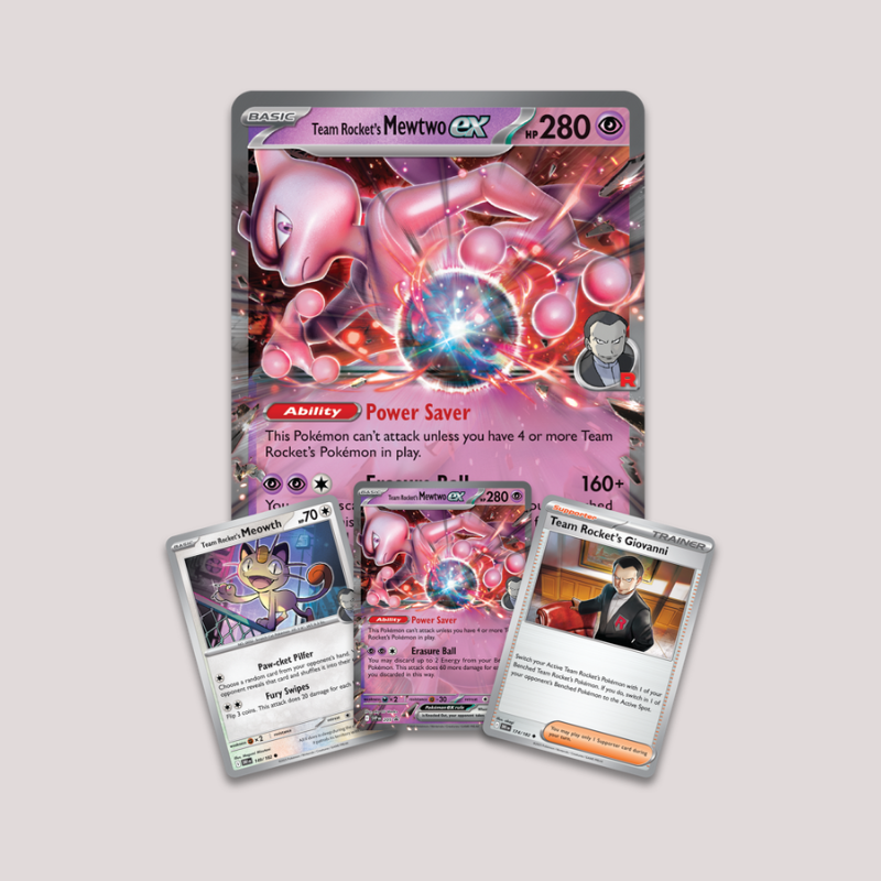 Wanneer Team Rocket’s Mewtwo ex wordt ondersteund door andere Team Rocket-Pokémon, kan zijn Erasure Ball-aanval tot wel 280 schade in één klap aanrichten.
