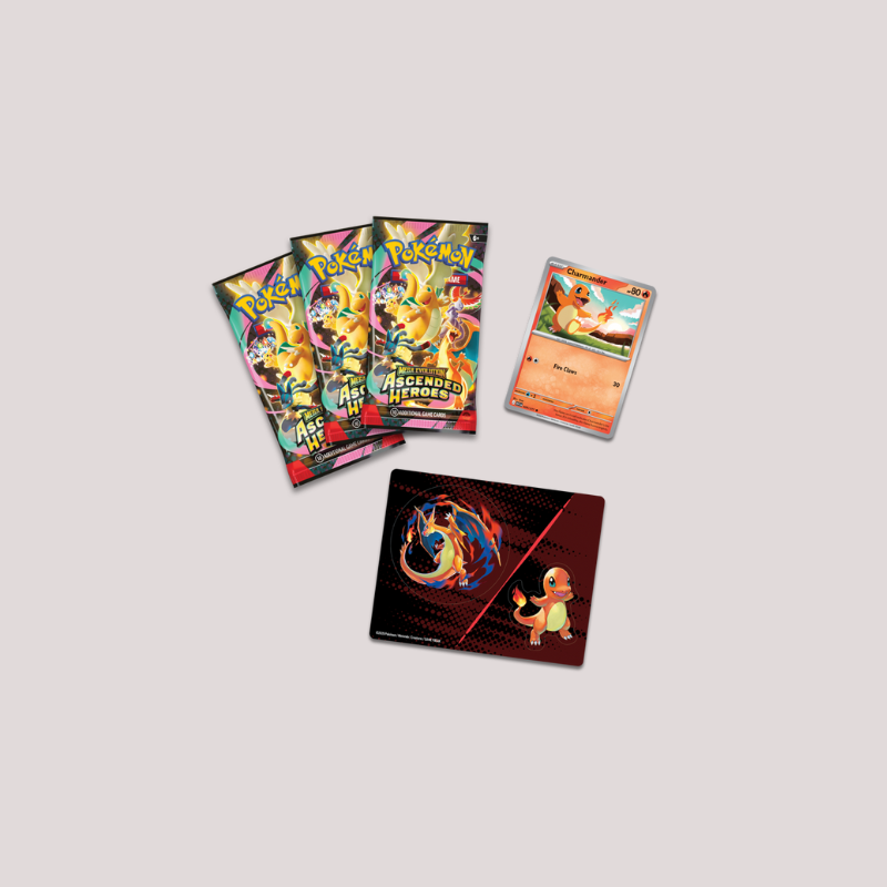 Pokémon da região de Kanto estão a ascender à grandeza - com cartas promocionais e tech stickers! Nesta coleção, vais encontrar o Charmander ou o Gastly como uma carta foil promocional, e ainda uma folha de tech stickers com Charmander e Mega Charizard Y ou Gastly e Mega Gengar. E como se não bastasse, ainda traz também três booster packs do set especial Mega Evolution - Ascended Heroes!